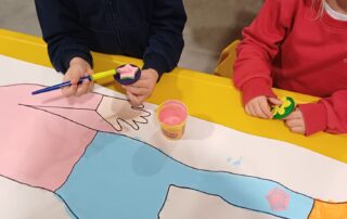 Um dos grandes momentos da semana foi a partilha dos autorretratos construídos em família com materiais recicláveis, criando peças únicas e cheias de criatividade: rostos feitos com botões, fios de lã, tampas e rolhas de cortiça, tecido, cartão e tudo aquilo que a imaginação das famílias permitiu transformar em arte. Ao apresentarem os seus trabalhos ao grupo, as crianças mostraram enorme orgulho e entusiasmo ao descrever cada detalhe do processo de criação: “Este é o meu cabelo!”, “A mamã ajudou-me a colar as tampinhas”, “Fiz com o meu papá!”. Para além de fortalecer a relação escola-família, estes momentos permitiram valorizar a identidade de cada criança, reforçando a ideia de que todas são únicas e especiais.