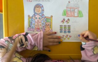 Ao longo da semana, exploramos a história: “A Menina de Cristal”, de Mundos de Vida, que nos ajudou a refletir sobre a importância de todas as crianças crescerem num ambiente de amor, segurança, proteção e felicidade. Através de conversas de grupo, falámos sobre sentimentos, sobre o que significa ser cuidado, e sobre o direito que todas as crianças têm a ter uma família e um lar onde possam crescer felizes, pois “a criança, para o desenvolvimento harmonioso da sua personalidade, deve crescer num ambiente familiar, em clima de felicidade, amor e compreensão;” (UNICEF (1989/1990) Convenção sobre os Direitos da Criança, p.6). Através de exemplos do dia-a-dia, falámos sobre os Direitos da Criança de forma simples, sensível e adequada à sua idade, reforçando o verdadeiro propósito desta data. A história serviu também de inspiração para explorar desafios de expressão gráfica, desenvolvimento da linguagem escrita, assim como atividades lúdicas de contagem.
